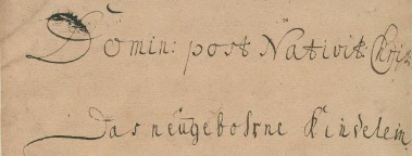 Cantata 122 for the Sunday after Christmas Das neugeborne Kindelein. Part of the title page of the manuscript. The handwriting is by J.A. Kuhnau, one of Bach’s most important copyists.