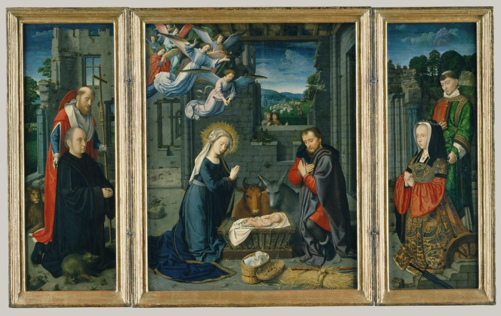 The Nativity with Donors and Saints Jerome and Leonard, by Gerard David, ca. 1510-15. Metropolitan Museum of Art, New York. More information about this painting can be found here.